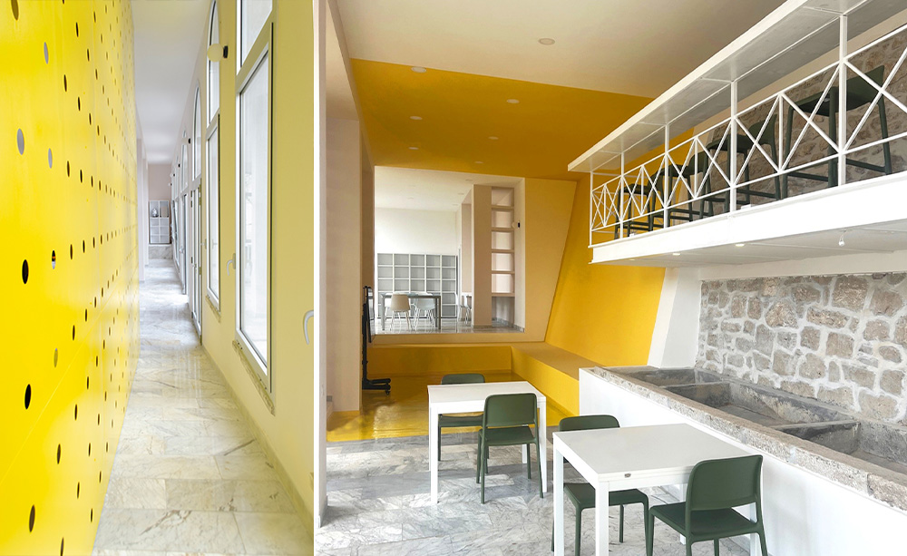 L’intervento prevede la ristrutturazione degli spazi interni senza alterare l’equilibrio strutturale dell’edificio, attraverso il ripristino delle finiture, la manutenzione di un solaio interno e la risoluzione delle problematiche legate all’umidità. È inoltre previsto l’adeguamento degli impianti elettrici e di climatizzazione, oggi non pienamente funzionali.
